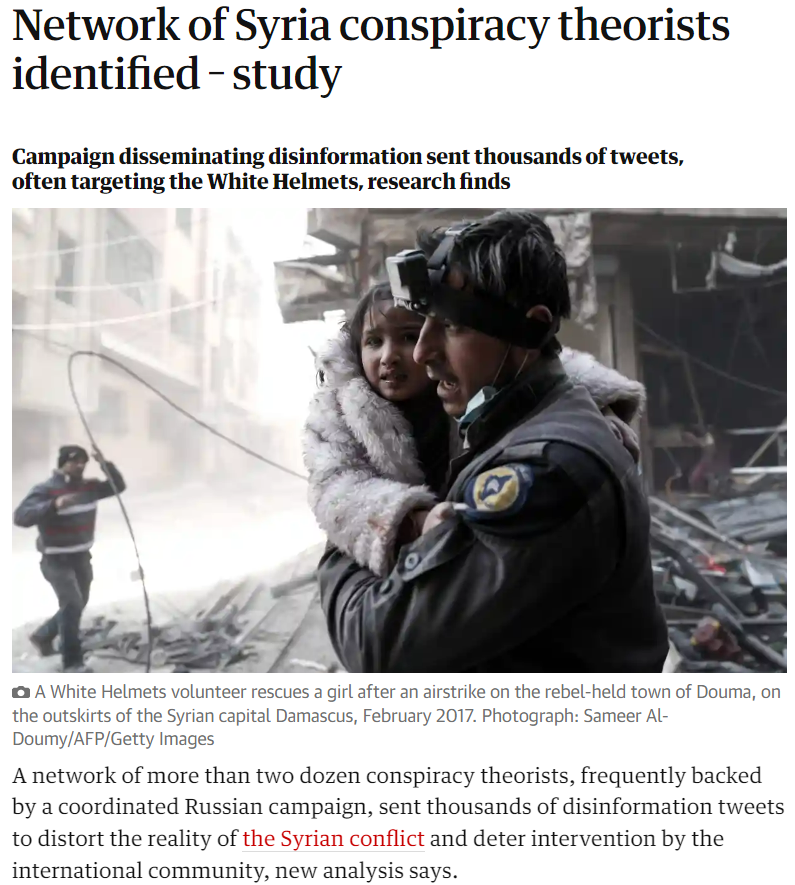 He was actually named as one of the most prolific misinformation spreaders about the Syrian conflict in The Guardian article by Mark Townsend.