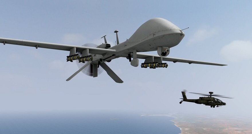 The MQ-1C Gray Eagle unmanned aircraft system is equipped with Hellfire missiles.