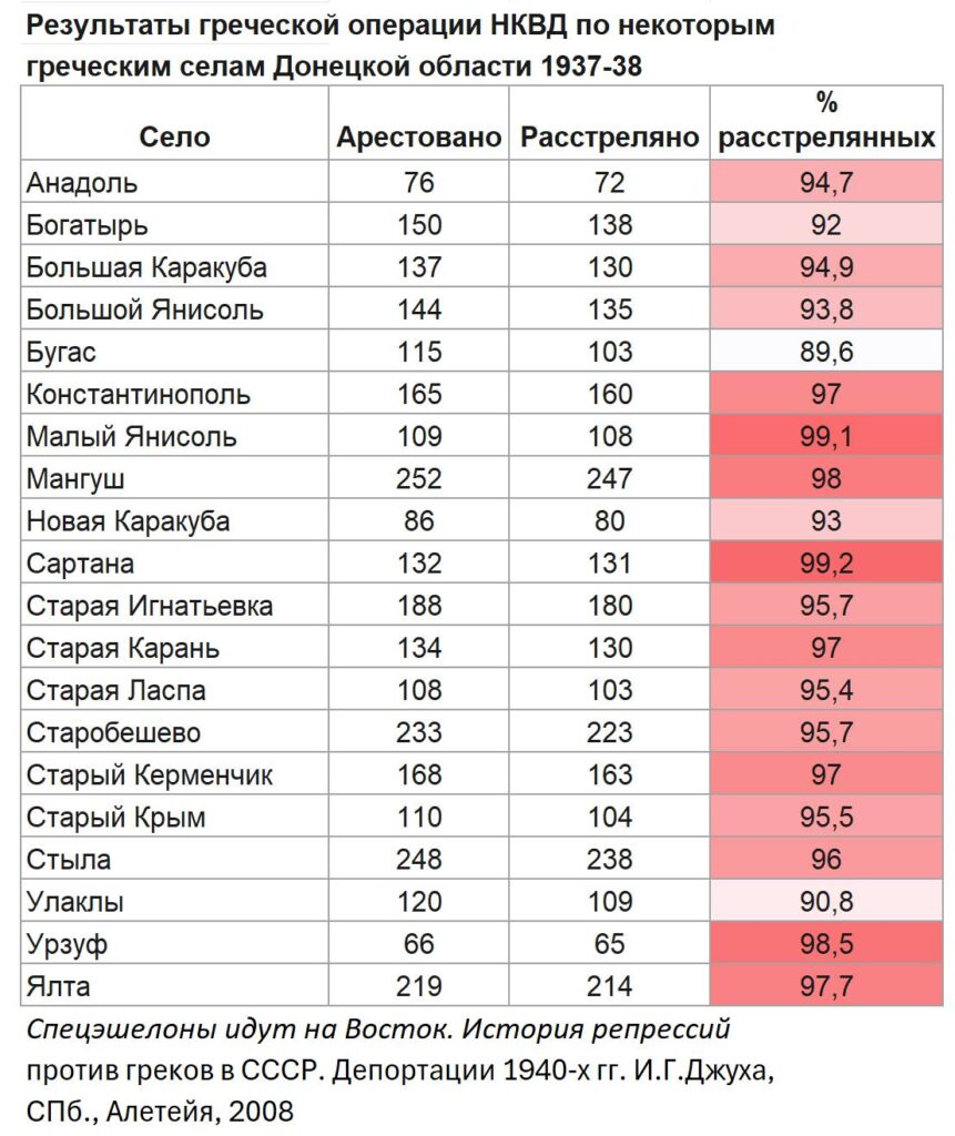Data from the book “Special Cattle Trains Go East. History of Repressions Against Greeks in the USSR”, 2008.