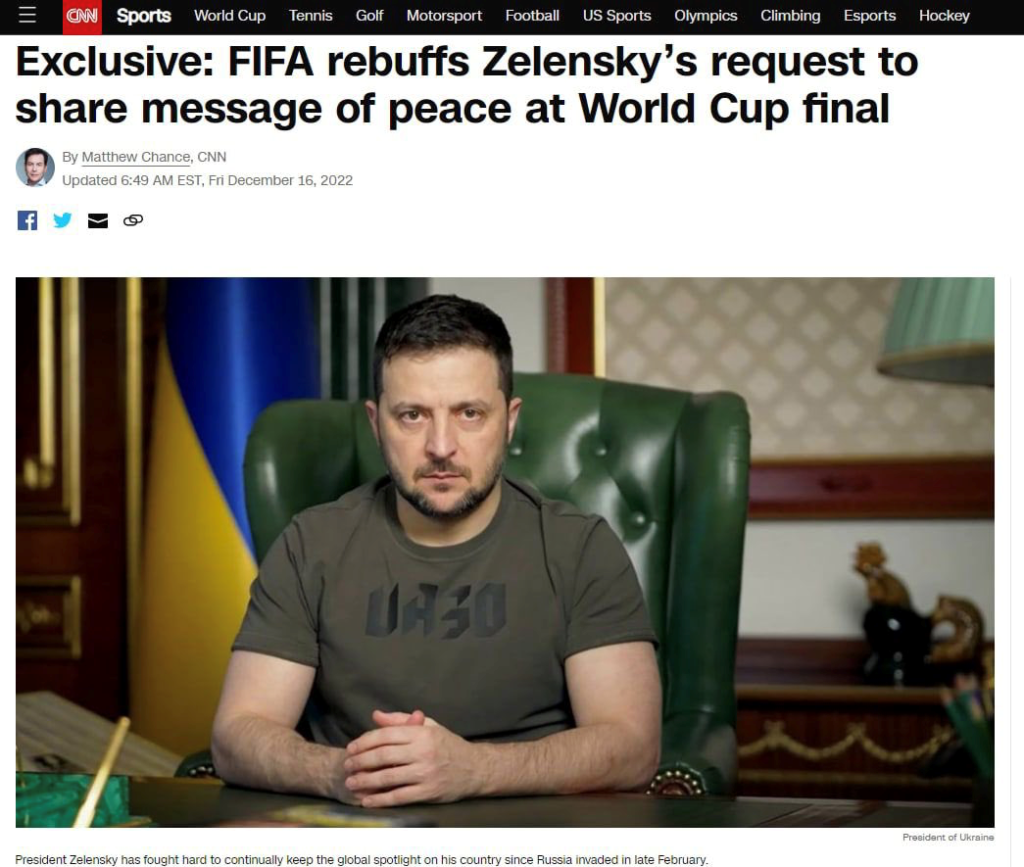 And the recent story of the rebuffs of Zelensky’s request for a speech to share a message of peace before the World Cup final reflects the inadequate perception of Gianni Infantino.