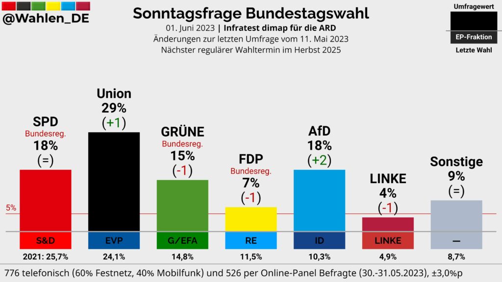The DeutschlandTrend poll, conducted monthly by infratest dimap for public broadcaster ARD/ Twitter: @Wahlen_DE