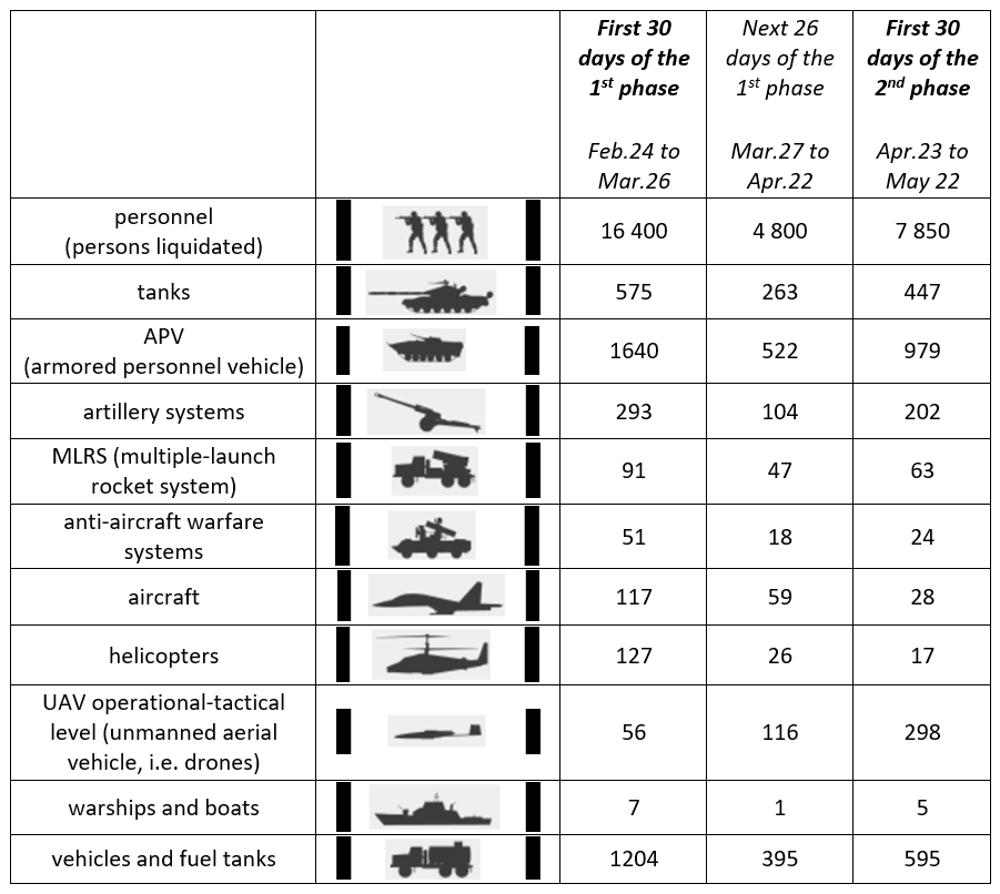 In the 2nd phase, Russia has fewer daily losses, but its troops are not advancing either.