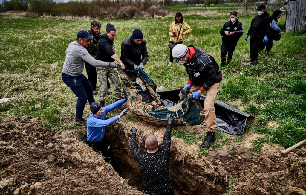 Translation: https://lumenvisionaryhub.com/man-in-a-black-bag-how-the-dead-are-exhumed-in-borodyanka/