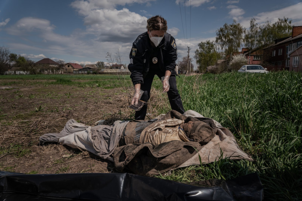 Policewoman Victoria Nemyrova is inspecting. She photographs each body and writes down special features in the notes on the phone: a ring on the hand, a bandaged leg, clothes, tattoos. There are few such signs on bodies that have been lying on the ground for more than a month and a half. For example, says a policewoman, it is difficult to establish the nature of the wound. The body itself seems unnaturally elongated, but, as the morgue forensic expert will later explain, it is only an optical perception: we are used to looking at people in an upright position, and now a different angle of view.