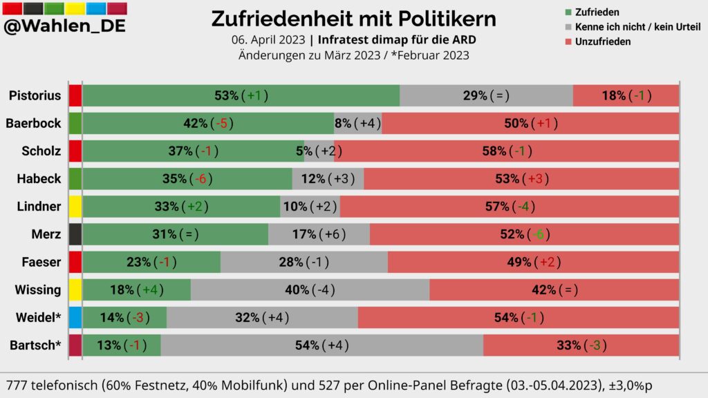 Moreover, Pistorius is the only politician among the candidates with a positive trust balance. Even Baerbock already has more “haters” than “fans” (50% vs 42%).