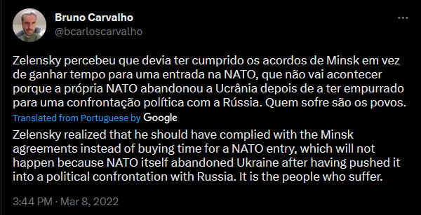 Carvalho’s been also going on about the Minsk agreement. He’s stated that Zelenskyy should’ve complied with the Minsk agreements instead of pushing for NATO.