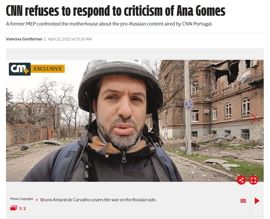 Now, here comes the interesting part: Bruno Carvalho is a contributor for @cnnportugal. On their website, you can see various video reports from Bruno with titles like “It’s very difficult to justify a narrative that says it’s the Russians who are bombing themselves” and “I counted at least 50 rockets in this zone alone: this is the result of hours of consecutive attacks in Donetsk”. You know, variations of the “genocide in Donbas”. Narratives that Russia has been pushing since 2014.