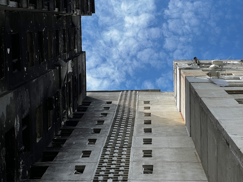 Now there is a difference – the degree of destruction. Black traces of fires, for example, are sometimes limited to an area of a couple of sections, but sometimes they reach a height of ten floors and cover the house almost completely, as if some harmful skin disease.