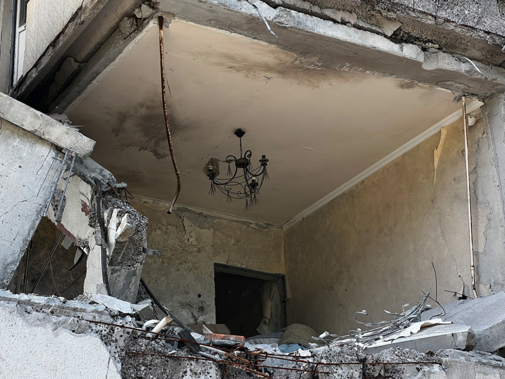 “We rushed into the kitchen. There was a hole between the landing and the kitchen, probably from a large fragment because in front of the building there are two funnels about three meters each,” – – says Valery.