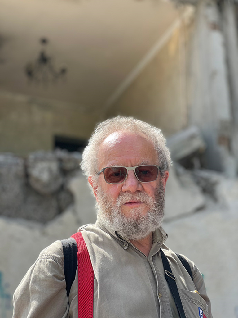 There was an apocalypse here, everything was burning and blazing. Imagine every house burning, completely, constantly, somewhere fading a little but then picking up automatically in a new house. The plane flies in, drops a bomb. Thus destruction. People who were still hiding in the basements are leaving. There are only very few residents left in the area now, perhaps twenty people still live here.”
