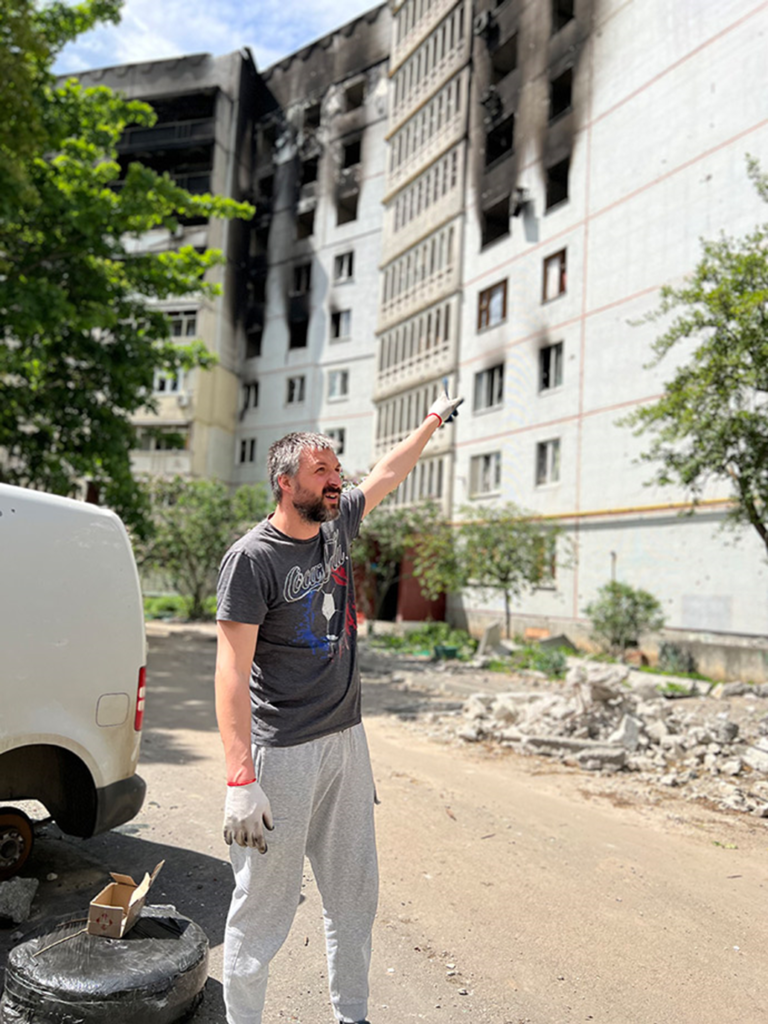 “Here, people hid wherever they could,” Denis confesses. “There is not a single bomb shelter in this area, not in new buildings, nowhere. Only damp basements and, they are very low even in kindergartens and absolutely not protected.