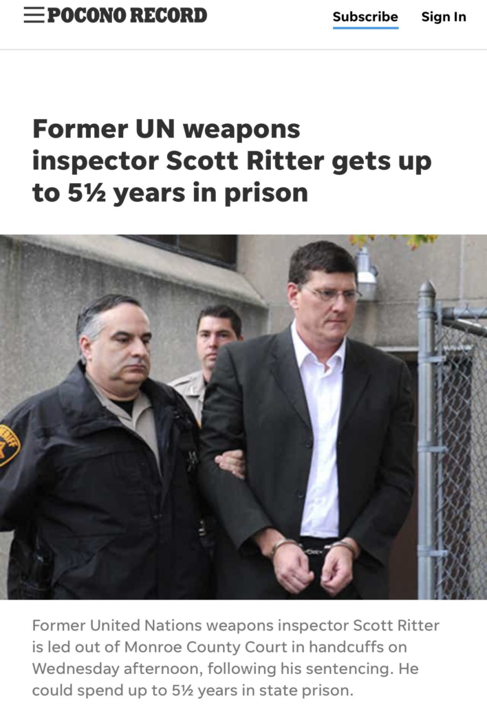 Former United States Marine Corps intelligence officer, former United Nations Special Commission (UNSCOM), pro-Russian propagandist, convicted sex offender.